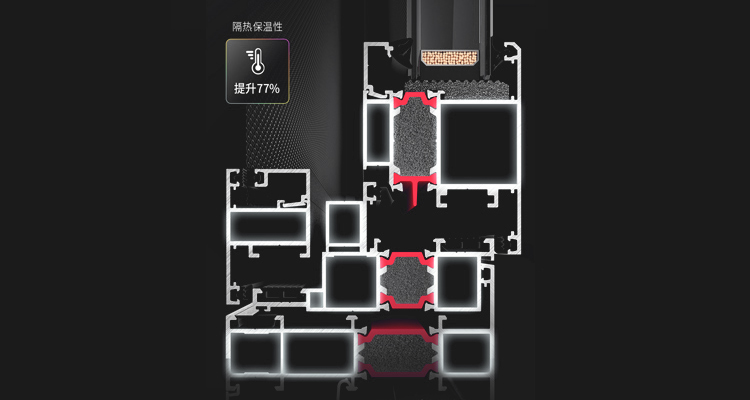 全部型材采用断桥铝多腔体结构 ,同时备案三道密封更加稳固、密封、防水、防风。
